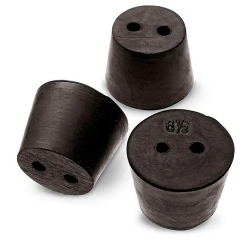 A rubber stopper is a small, cylindrical piece of rubber used to seal the opening of a container, such as a test tube, flask, or bottle. It is used to prevent the contents of the container from spilling or evaporating, and to protect the contents from contamination. Rubber stoppers are available in a variety of sizes and shapes to fit different containers. They may be solid or have one or more holes to allow the insertion of tubes or other devices.