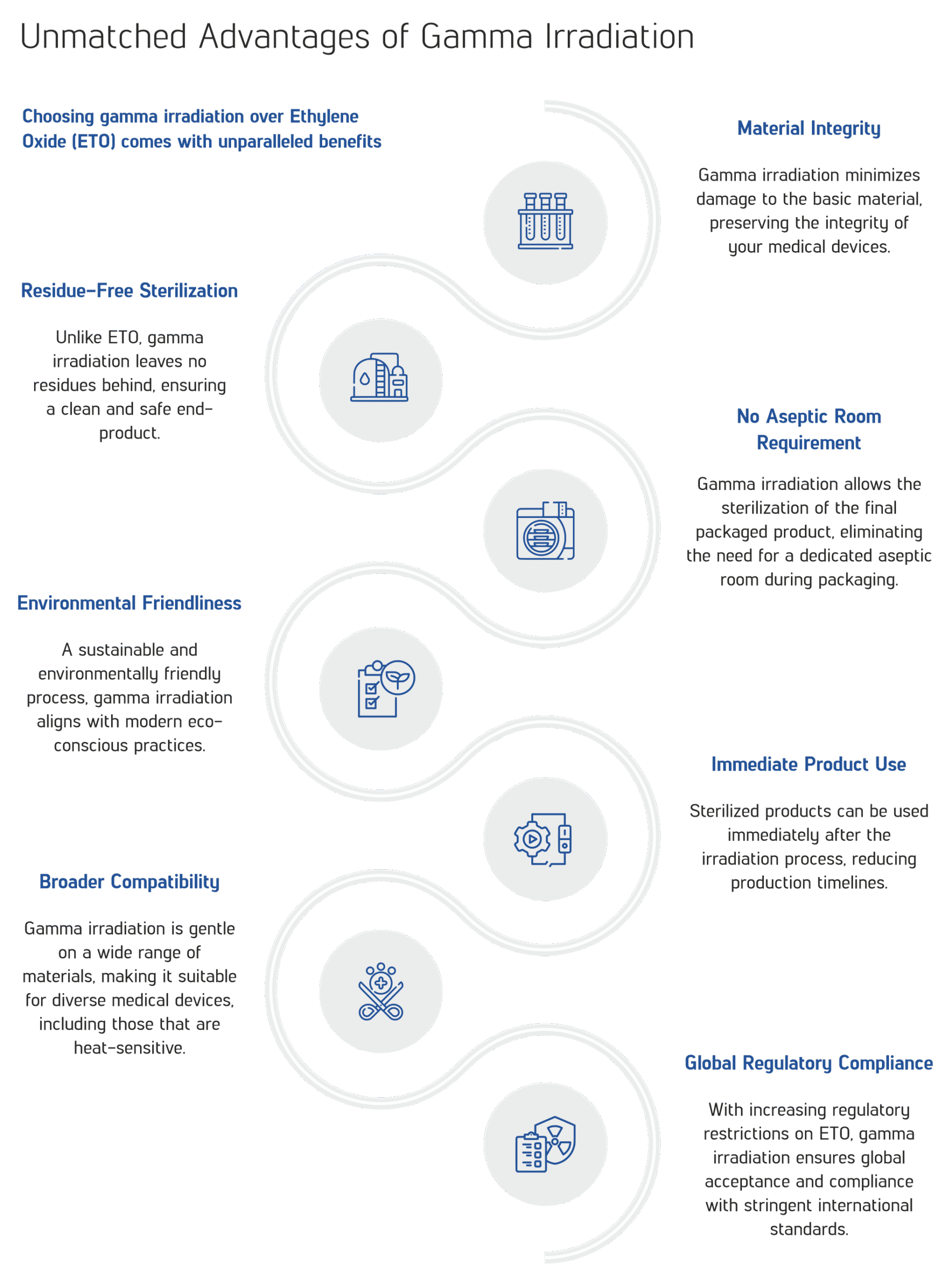 Choosing gamma irradiation over Ethylene Oxide (ETO) comes with unparalleled benefits for your medical devices: